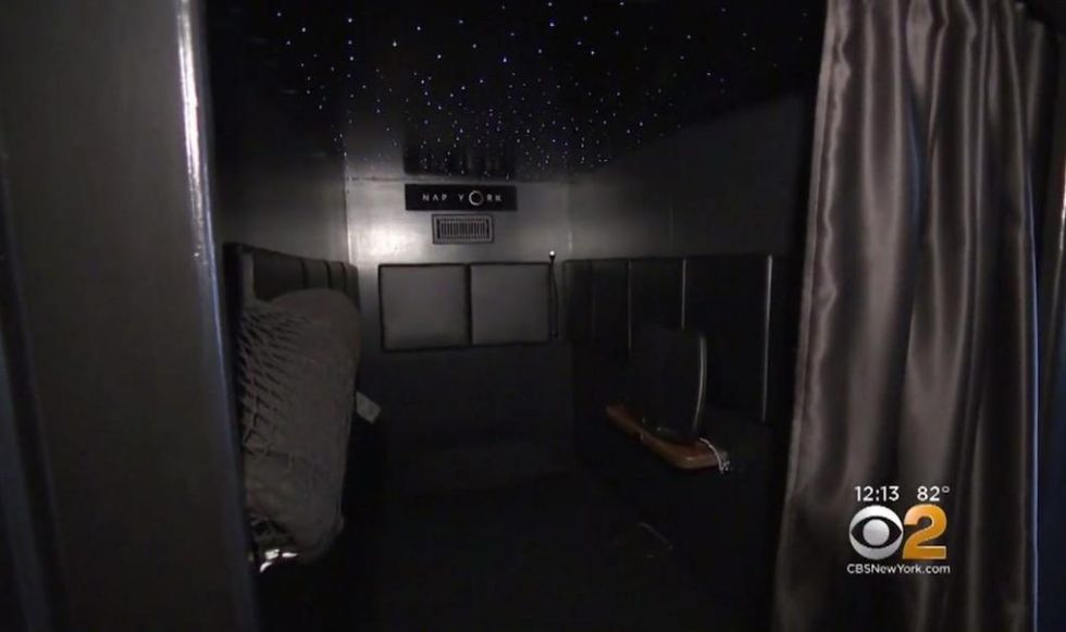 If you've ever wanted to snooze during your work day, "nap pods" may be your dream come true. (Image source: WCBS-TV video screenshot)