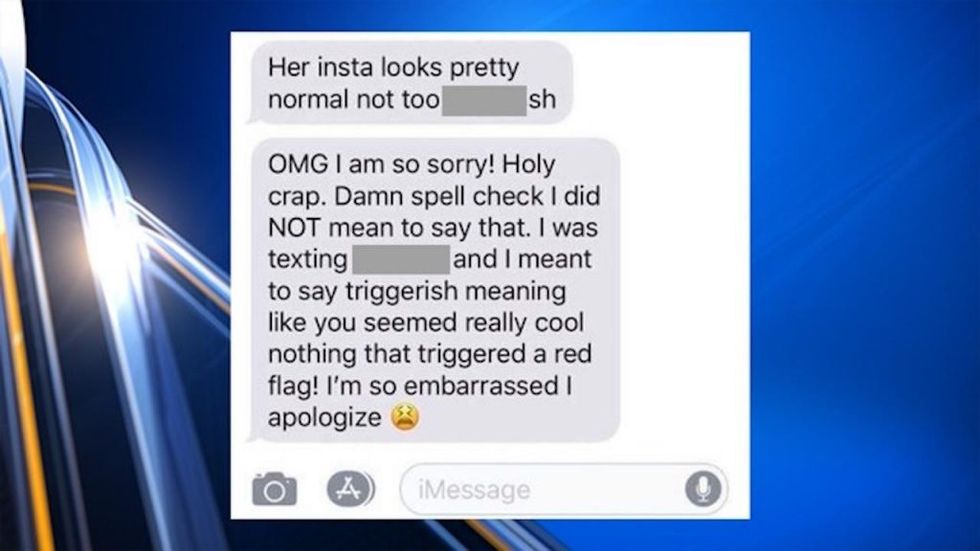 Unfortunately, Schaefer intended the text for another friend. In a follow-up, she explained to her black roommate she meant to say "triggerish," blaming "d**n spell check" on the mistake. She said the word "triggerish" means "that nothing triggered a red flag."