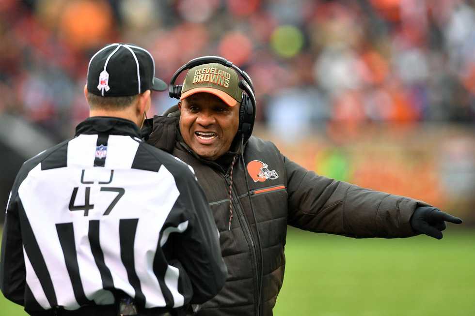 Cleveland Browns head coach Hue Jackson punished a rookie wide receiver for a drug violation by making him play more than normal in a game. (Jason Miller/Getty Images)