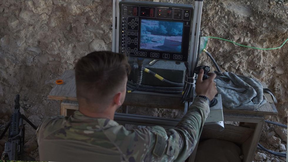 A U.S. Army soldier uses a cruise system at a checkpoint on July 7 during a patrol against Islamic State militants at the Deh Bala district in the eastern province of Nangarhar Province. (WAKIL KOHSAR/AFP/Getty Images)