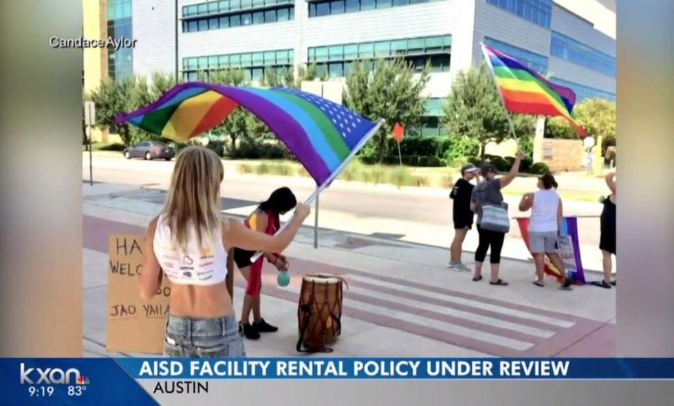 A Texas school district should stop renting its facilities to a church that says marriage is between a man and a woman, LGBT supporters said. (Image source: KXAN-TV video screenshot)