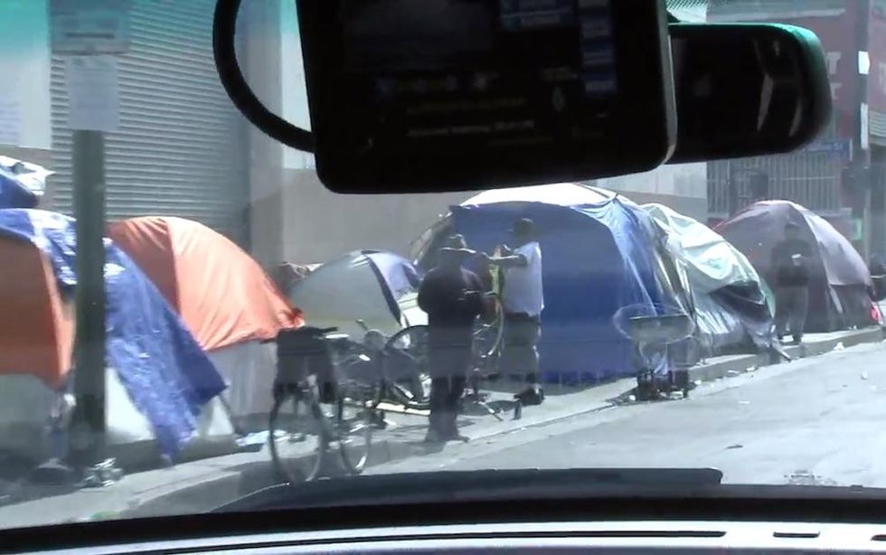 Los Angeles police arrested three people on felony election fraud charges for paying $1 or less to homeless people on Skid Row in exchange for their forged signatures. (Image source: KABC-TV video screenshot)