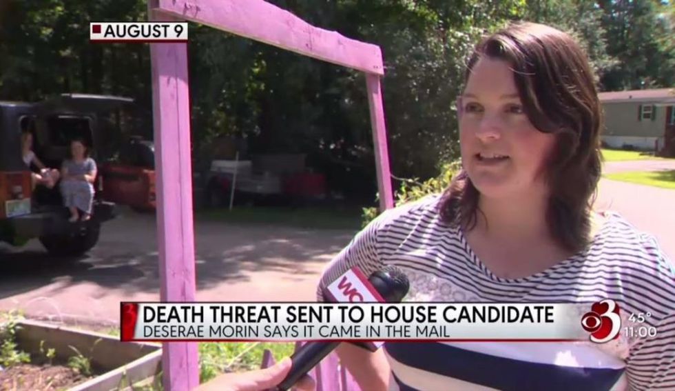 A Vermont mother of two daughters who's running as a Republican for the state's House of Representatives said she received a left-wing death and rape threat in a pro-"Socialism" letter mailed to her home. (Image source: WCAX-TV video screenshot)