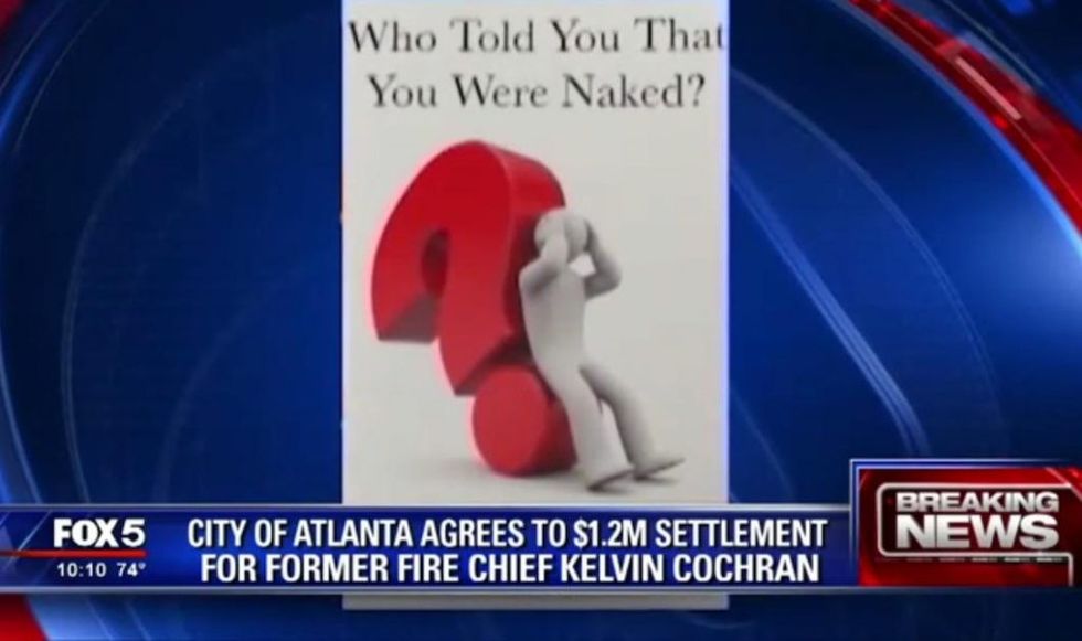 Cochran filed a lawsuit against the city and Reed in February 2015, arguing that his free speech and due-process rights had been violated, the station said. Cochran added that Reed damaged his reputation, WAGA said, and Cochran's lawyer argued that Reed made it impossible for Cochran to get another job in the firefighting industry.