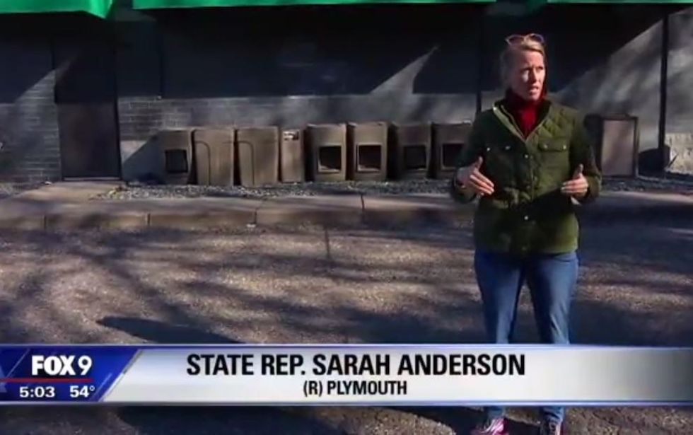 Anderson told the station the man kicking her campaign sign said he was an anarchist and that Anderson should kill herself. She added to KMSP that she drove to a nearby gas station where she tried to take a photo of him while he walked down the road.