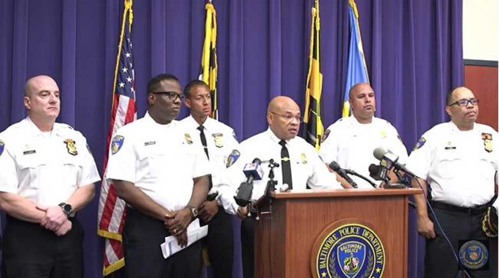 Baltimore Police Department Interim Commissioner Gary Tuggle (speaking at the podium) announced Wednesday that 230 desk-duty officers to be patrolling the streets to address a recent spike in crime. (Image source: YouTube screenshot)