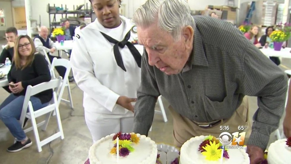 The World War II veteran and Dallas entrepreneur who still goes to work two days a week was honored by co-workers at S&H Distributing on his big day.