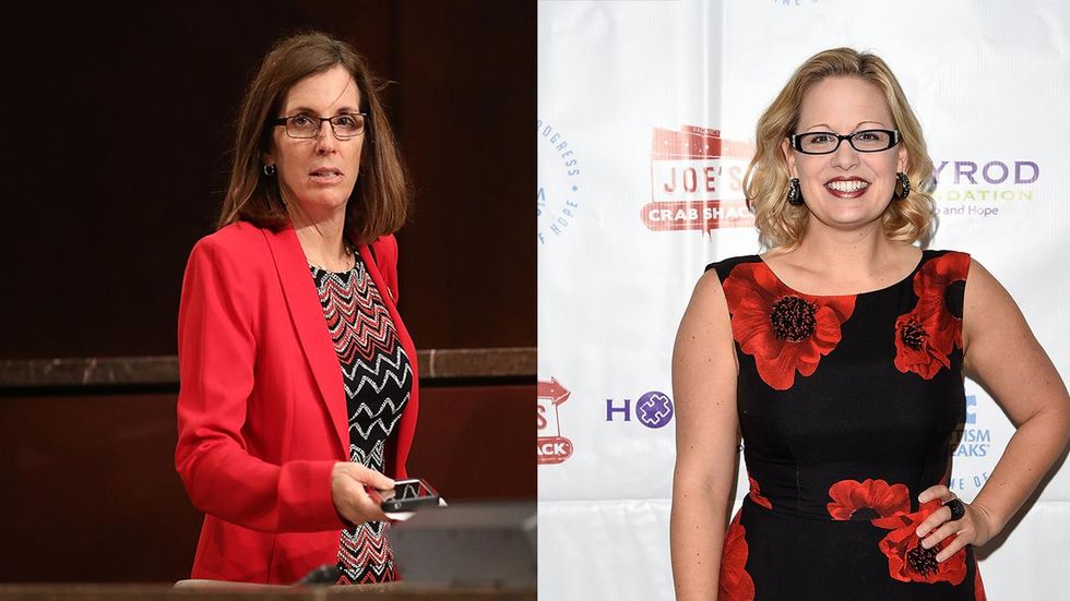 Republican Martha McSally (left) and Democrat Kyrsten Sinema are competing in a heated and competitive Arizona U.S. Senate race.(Photos by Chip Somodevilla (left)/Getty Images and Andrew H. Walker (right)/Getty Images for Autism Speaks) \n\n\n