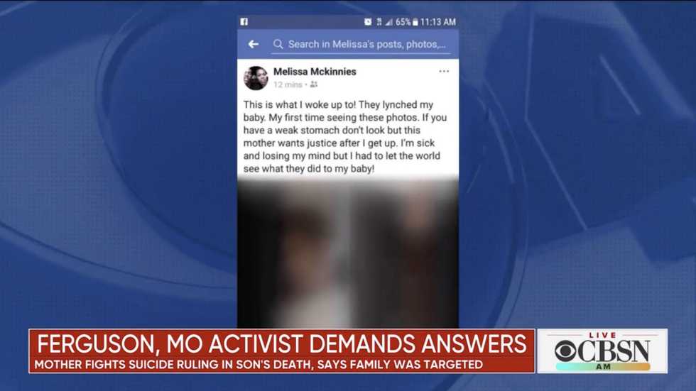 McKinnies — a prominent activist — in a since-deleted Facebook post, wrote, "They lynched my baby," and shared a graphic photo, the Post-Dispatch reported.