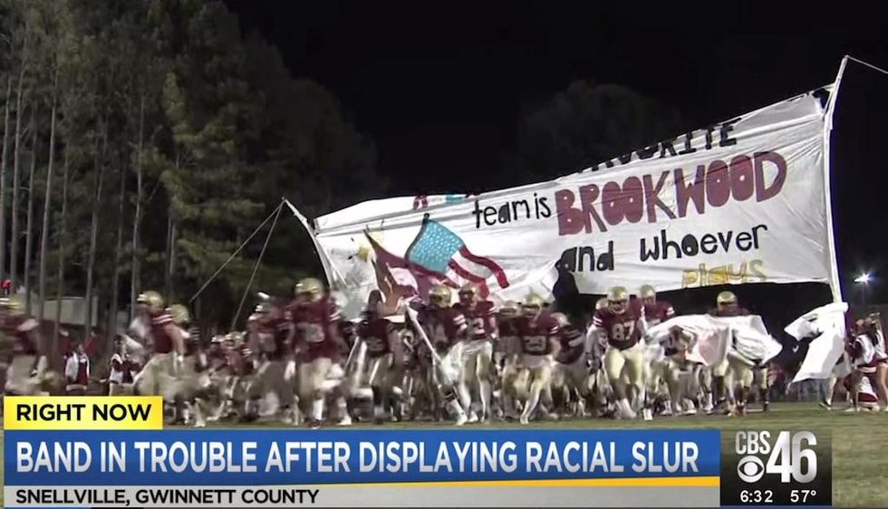 After four members of a Georgia high school marching band spelled out racial slur at last Friday's game, it was discovered that the students in question are all minorities. (Image source: WGCL-TV video screenshot)