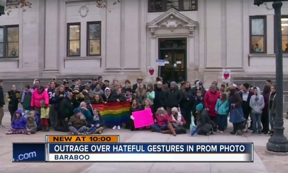 The Baraboo School Board met Monday afternoon and discussed the photo, WMTV said, and dozens of protesters gathered Monday afternoon outside the Sauk County Courthouse over the image.