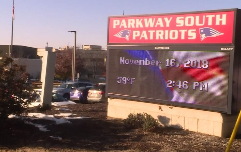 By the way, if you're wondering what Parkway South High School's mascot is — it's the Patriots.