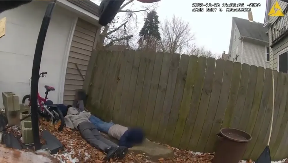 Police bodycam video shows the arresting officer drawing his gun on the 8-year-old and the 11-year-old males, who were cowering against a fence, and ordering them on their stomachs. One can be heard whimpering.