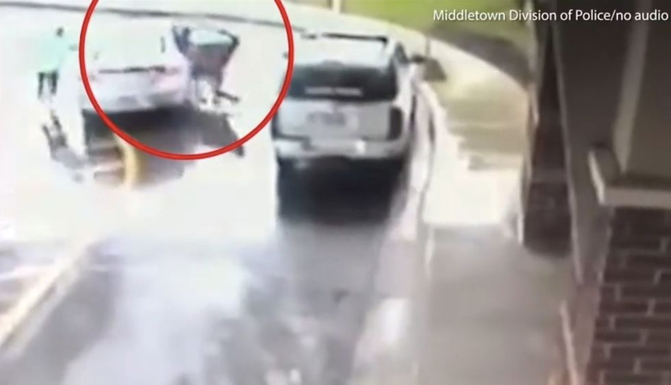 But a safety feature prevented the car from locking since the keys were still inside — and just like that a man climbed into the driver's seat and began to pull away, WCPO said.