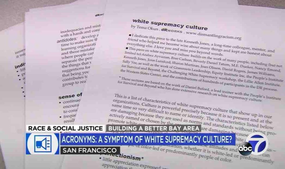 The anti-acronym thing is based on a 1999 paper by Tema Okun titled, "White Supremacy Culture," KGO said, adding that Okun told the station that "our culture perpetuates racism when things continue to be written down in a certain way."