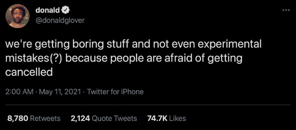 On the flip side, one user who believed Glover was referring to cancel culture itself wrote, "The PC culture has really put a damper on creative work."