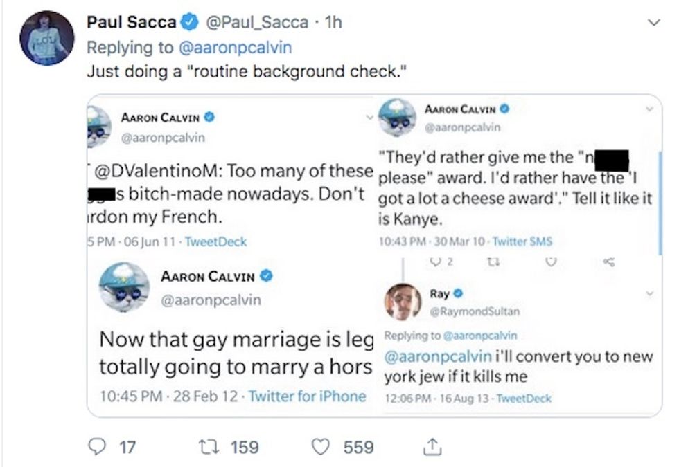 And the armchair sleuths said they uncovered "racist" Twitter posts from Calvin — and they reposted them for all the world to see. Here's a small sampling: