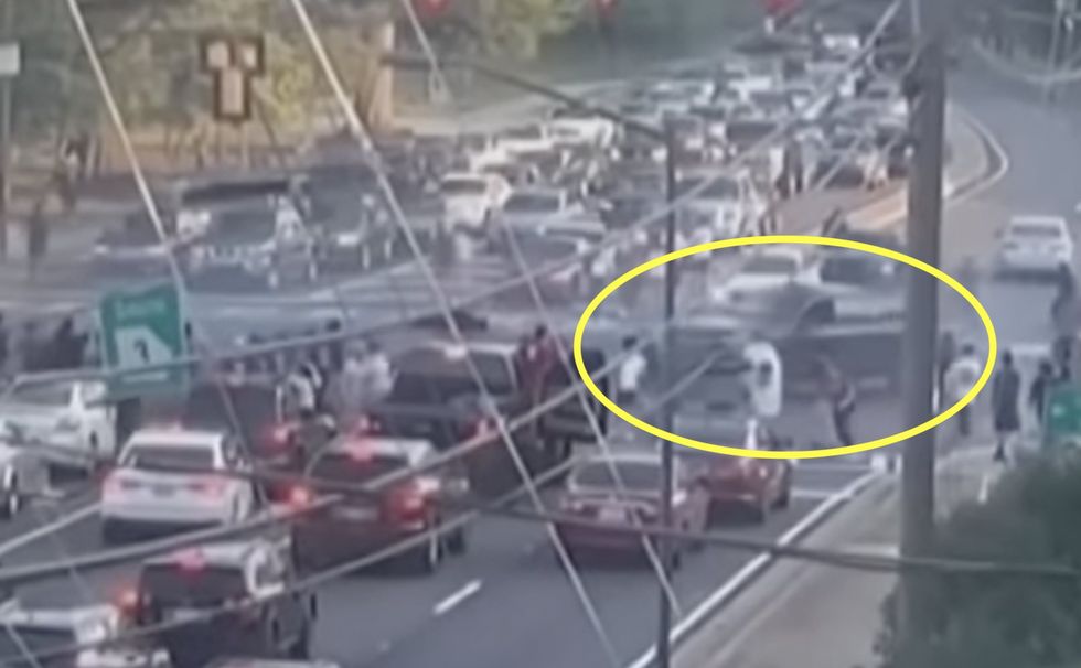 As a trooper appeared in the video frame, the driver tried to get away, and the onlookers took off running. The driver in question "fled through the crowd striking several pedestrians, one of which suffered an injury," the Georgia State Police told WXIA.