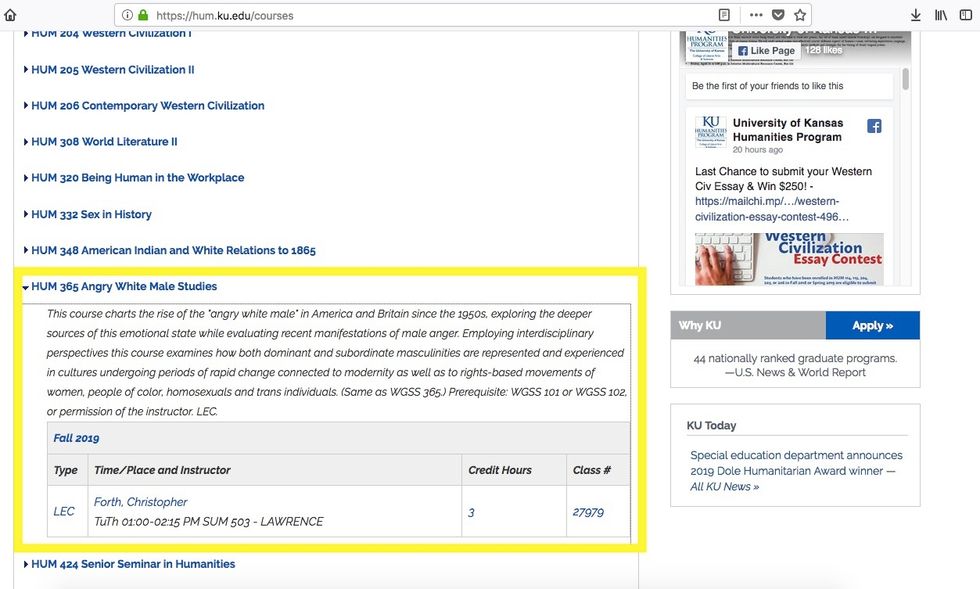 The University of Kansas is offering a course titled, "Angry White Male Studies," next fall — which will explore "the deeper sources of this emotional state while evaluating recent manifestations of male anger" in America and Britain since the 1950s — and one U.S. congressman isn't happy about it.