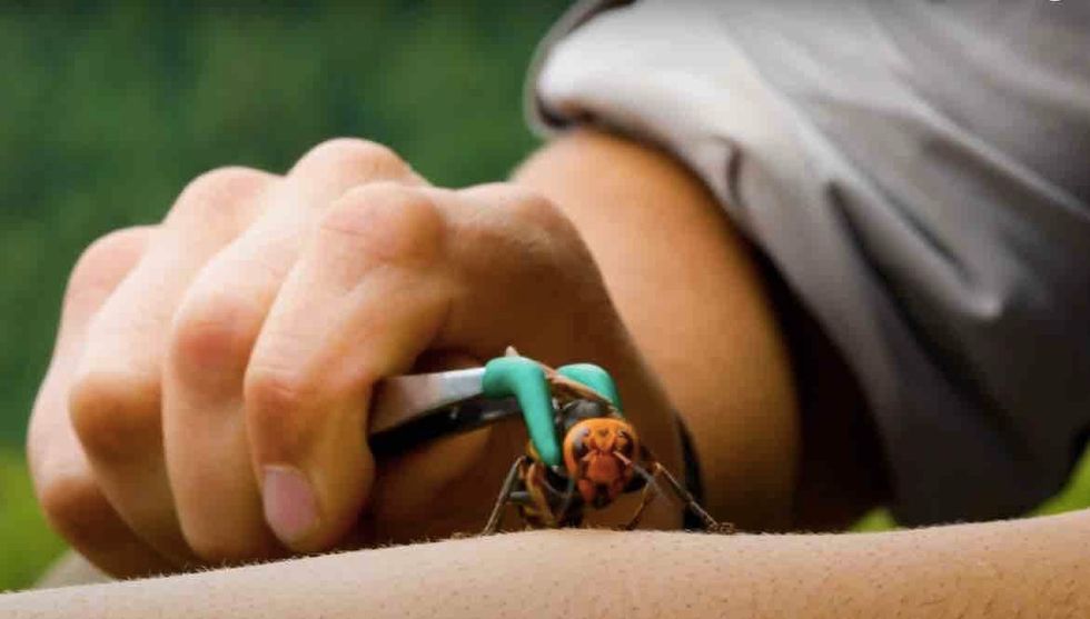 On the heels of news that the Asian "murder hornet" has been discovered in the United States for the first time, videos of an animal expert allowing a similar hornet sting him are lighting up the internet.