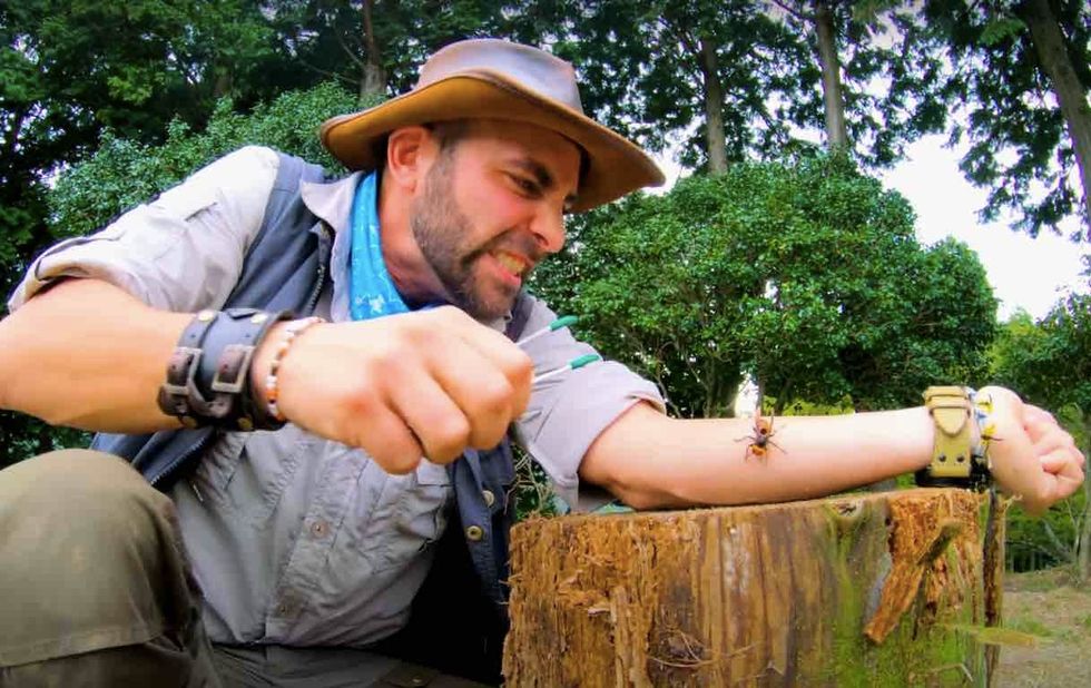 In 2018, Peterson & Co. traveled to Japan, captured a Japanese giant hornet, and then Peterson went to great lengths to let it sting him to demonstrate the effects on his body while video rolled.