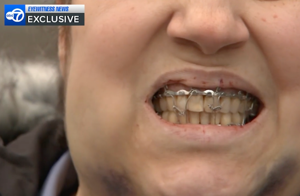 WABC reported that her face was fractured in several places, her mouth is now wired shut, and she will need to drink food from a straw for six weeks.