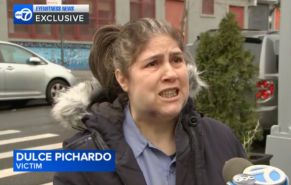 Dulce Pichardo, 57, spoke to WABC-TV after a male randomly punched her in the face around 5 p.m. Tuesday while she was walking down Grand Avenue near Dean Street in Brooklyn.