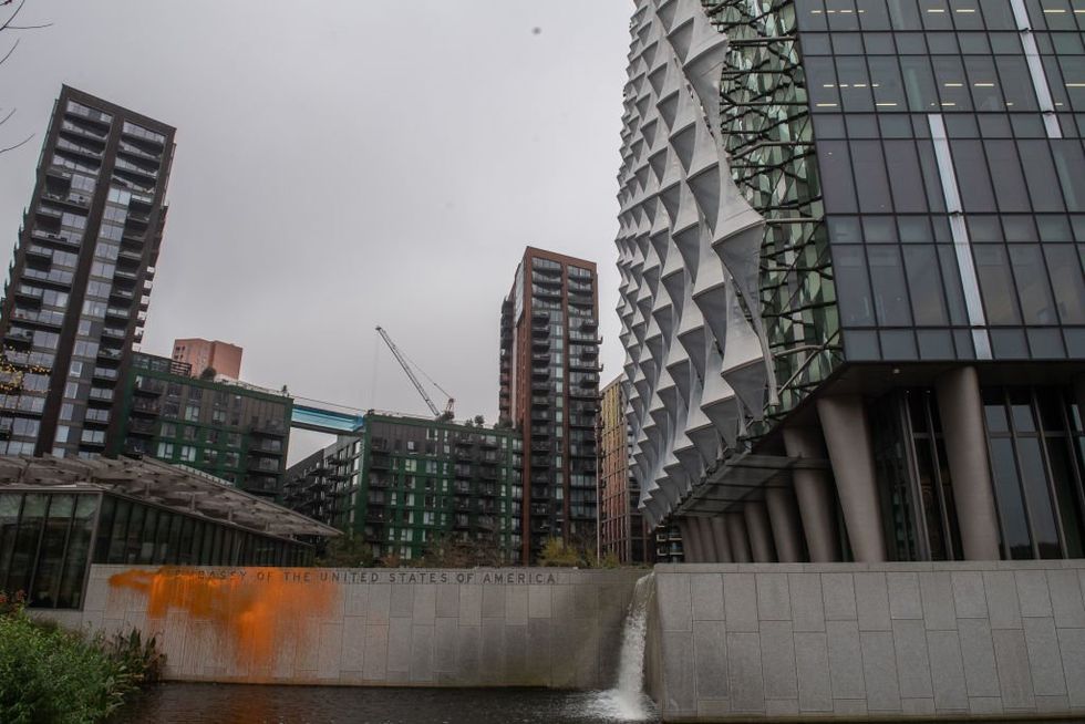 Anti-oil activists allegedly vandalized the United States Embassy in London in the early hours of the morning after Donald Trump was elected president.