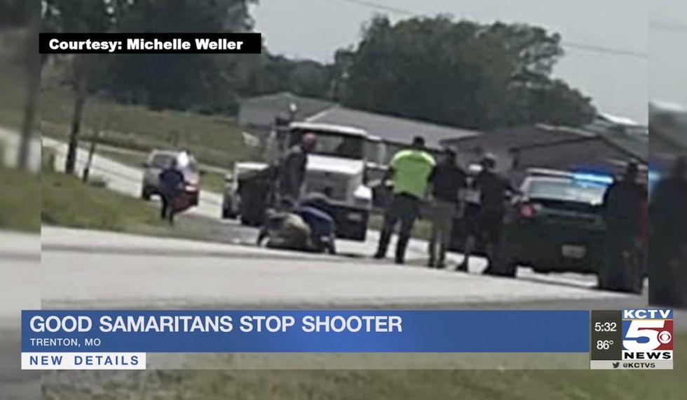 "The vehicle by that time came to kind of a rolling stop on U.S. 69 Highway," Missouri Highway Patrol Trooper Jake Angle told the station. "There were some citizens there at the Pit Stop convenience store ... that I suppose sensed something wasn't right [who] came over to her aid and subdued the suspect until other law enforcement could arrive."