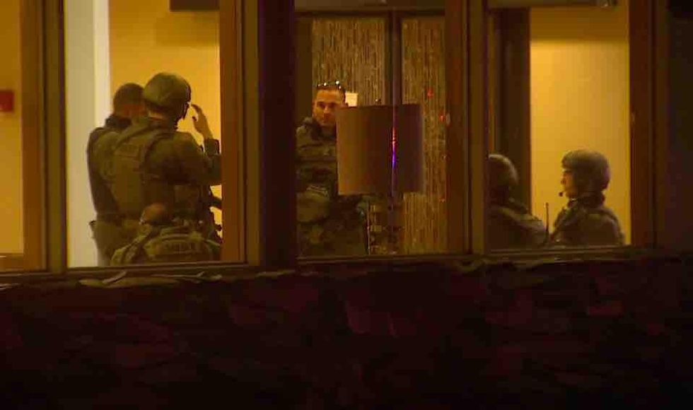 As of Sunday night, 12 people had been arrested, the station said, adding that the SWAT team conducted a room-by-room search and employees and guests were escorted safely out of the building.