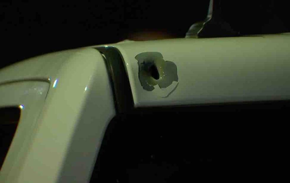The station said no one was hit by the gunfire, but at least one vehicle was damaged by bullets.
