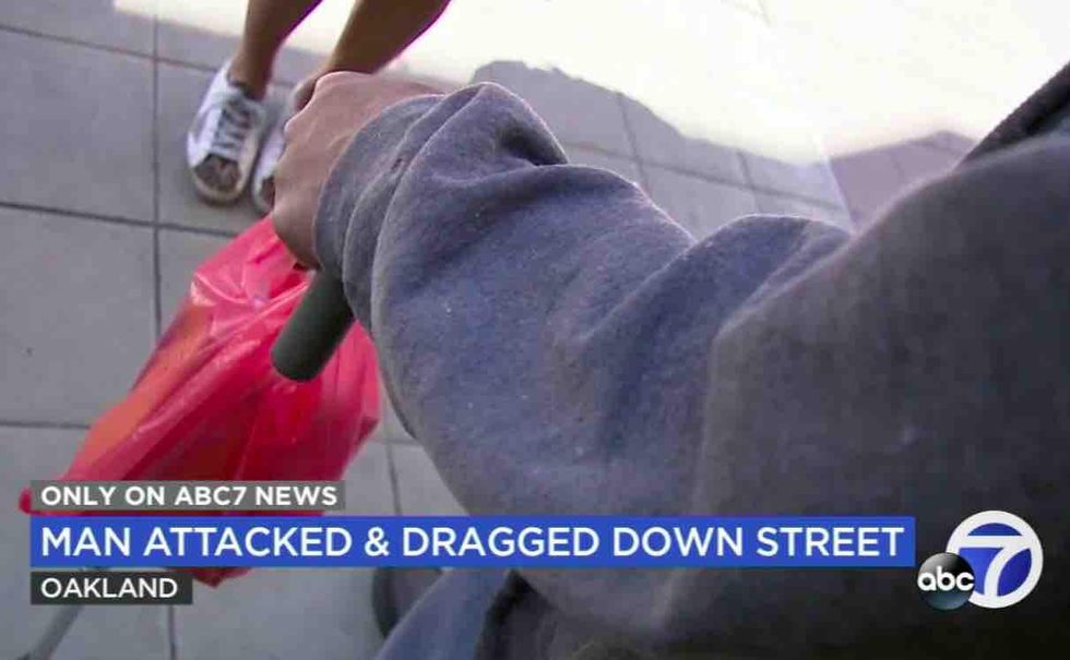 "I love Oakland ... but not anymore," he told the station. During the interview, the man's hand shook while clutching a cane to support his already weakened legs.