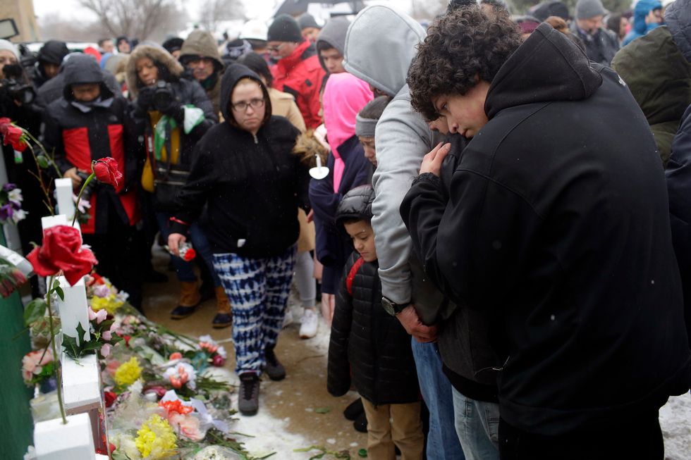 “Just to simply offer condolences is not enough," Aurora Mayor Richard Irvin told the crowd. "It doesn't measure the amount of pain that we feel for the loss that we've experienced in this community."