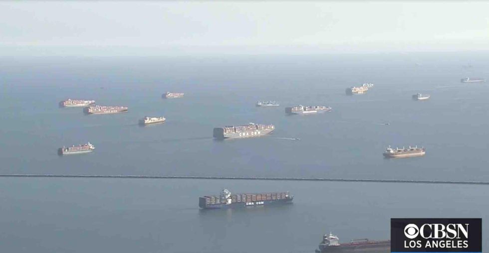 As backlogged cargo ships work their way through Los Angeles area ports operating around the clock to ease supply chain disruptions, KCBS-TV reported that shipping containers are being dumped in port neighborhoods once they're emptied because there's no space to store them anymore.