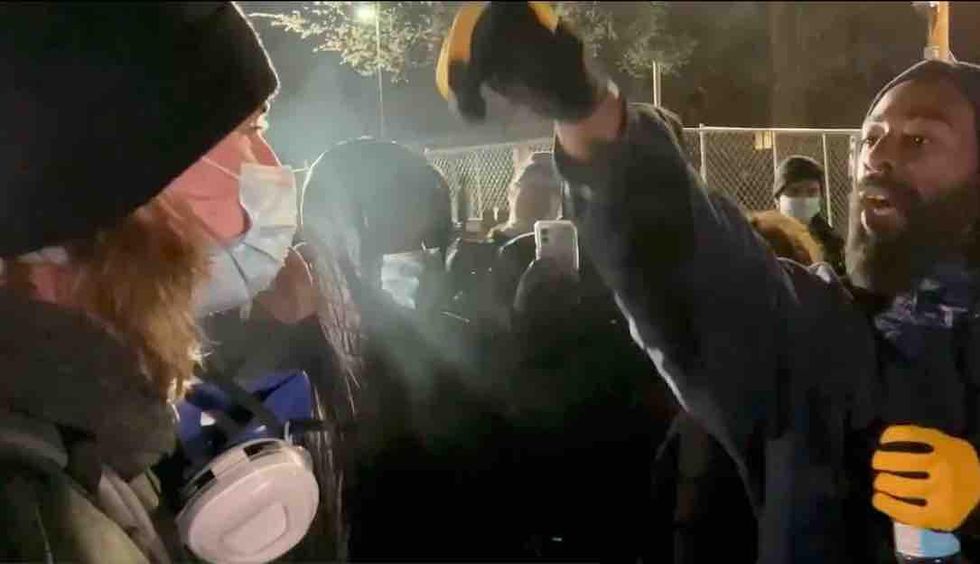 However, another clip appeared to show that same white protester confronting another white protester for throwing a water bottle at cops.