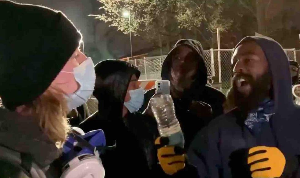 The clip posted by the Washington Examiner's Nic Rowan shows at least four black protesters — three men and one woman — cursing out the lone white protester.