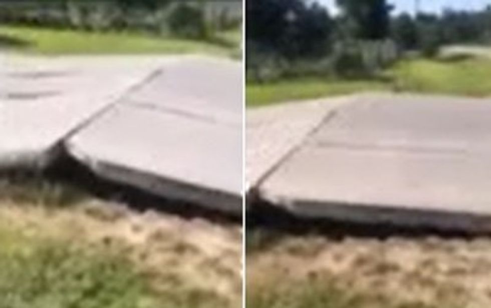The image below is a composite screenshot of a video given to Blaze News from Colony Ridge resident Maria Acevedo. On the video, a woman off camera warns travelers in Spanish to "be careful" driving near the intersection of CR3404 and CR3409, located in the Colony Ridge subdivision of Bella Vista, a few miles away from Santa Fe.