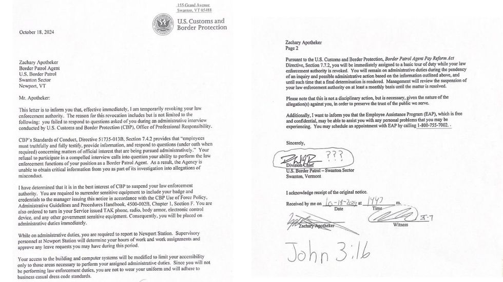 "I feel I've done nothing wrong," Apotheker stated. He acknowledged that wearing his Border Patrol uniform during the podcast appearance breached the agency's policy. However, he explained that he only did so after filing a whistleblower report through the DHS' Office of Inspector General and speaking to a member of Congress, and "nothing was done."