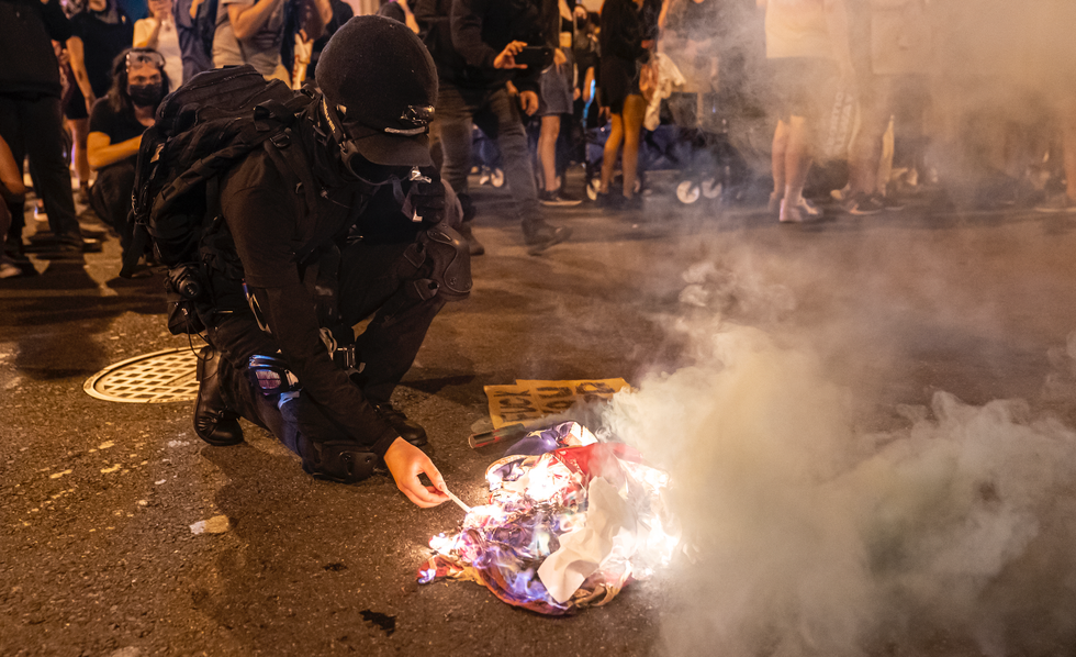 Antifa-linked pro-abortion group Jane's Revenge vowed to undertake the "night of rage," and black-bloc protesters wielding umbrellas marched through the streets of Washington, D.C. The group chanted slogans such as, "If abortion ain’t safe, neither are you," "If we don’t get it, burn it down," "Every city, every town, burn the precinct to the ground," and "F*** the church, f*** the state, we won't let them decide our fate." The protesters burned American flags. You can view related videos here, here, here, and here.