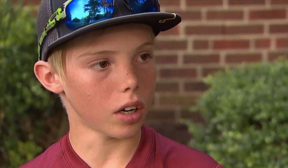 The station said in an earlier story that the intruder kicked Braydon in the stomach — after which the boy got up, swung the machete again, and missed. The intruder then kicked Braydon in the side of the head, grabbed several items, but noticed he was bleeding profusely due to the kid's machete strike, WTVD said. So the intruder ran off, the station said.