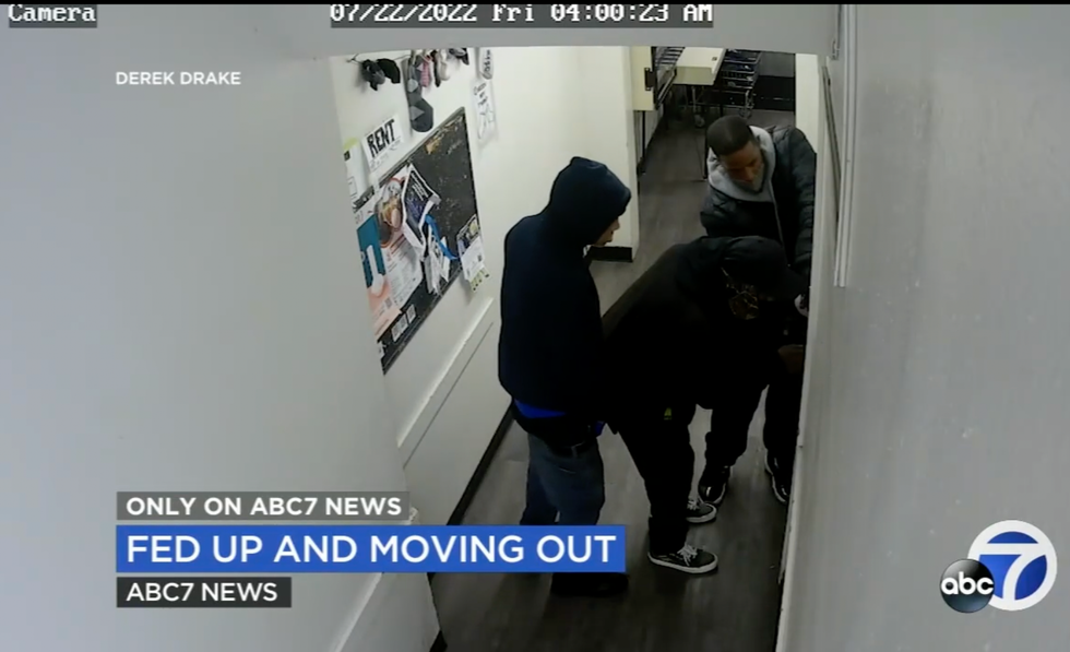 Drake told KGO he tried going cashless — but to no avail, as more videos showed break-ins continuing unabated, including one that captured a crowbar-wielding woman trying to pry open an office door.