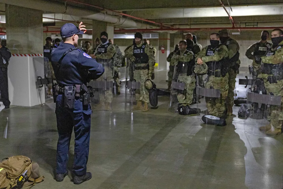 Deputy Police Chief Eric Waldow claimed in a U.S. Capitol Police radio dispatch about 1:11 p.m. that his officers were using “indirect firing,” but the department’s surveillance video contradicts that claim.