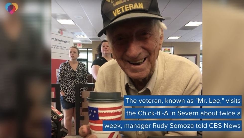 This time it was Daryl Howard, manager of the Chick-fil-A Quarterfield location in Severn, Maryland, who assisted a customer known as "Mr. Lee" — a World War II veteran, WJZ-TV reported.