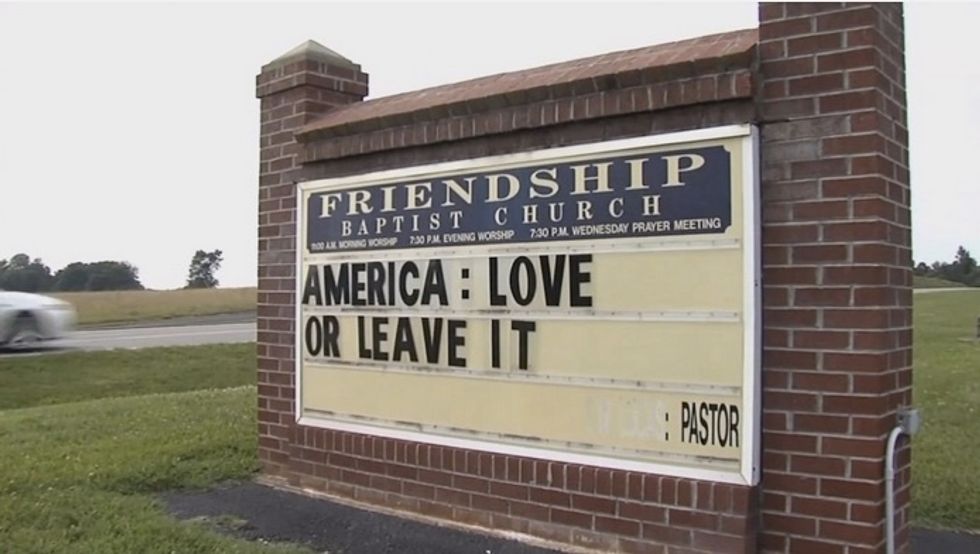 The Virginia pastor who posted the phrase "America: Love It or Leave It" on his church's roadside sign not surprisingly has received his share of backlash over the sentiment — but now folks from the church have joined the fray.