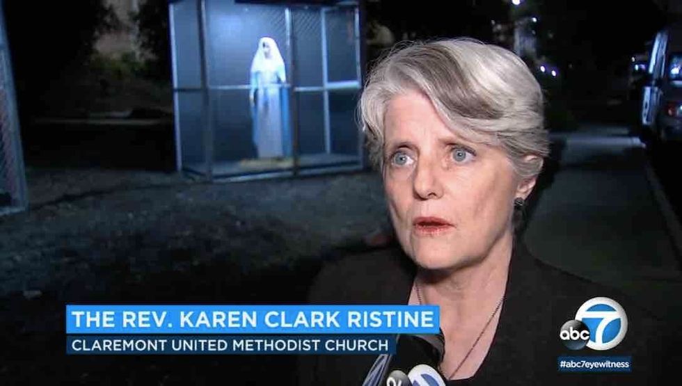 "We thought about the most famous refugee family in the world, the family of Jesus," the church's senior minister Rev. Karen Clark Ristine told KABC, adding that another Nativity scene inside the church shows Jesus, Mary, and Joseph reunited.