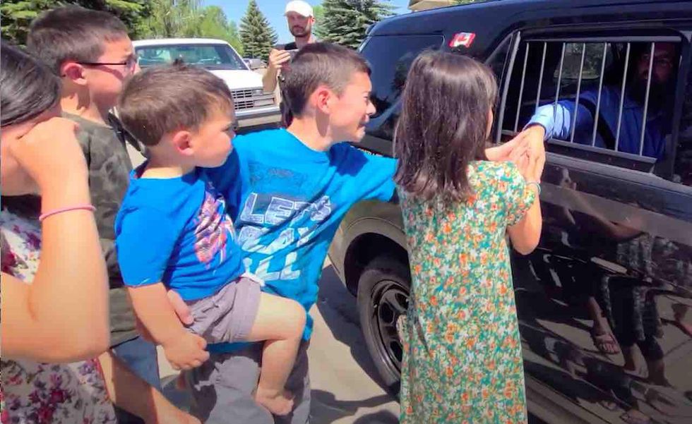 As he waved goodbye to his family from a barred window, his kids reached out and held his hand: