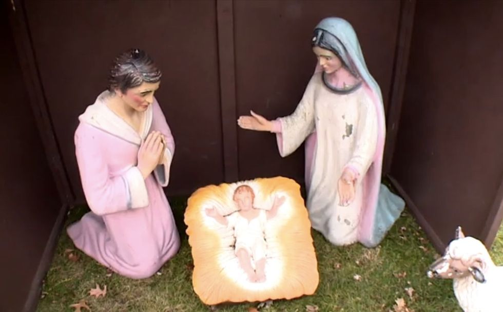 The city of Dover, Ohio, has moved a Nativity scene and a Ten Commandments monument after an atheist group threatened a lawsuit. (Image source: WJW-TV video screenshot)