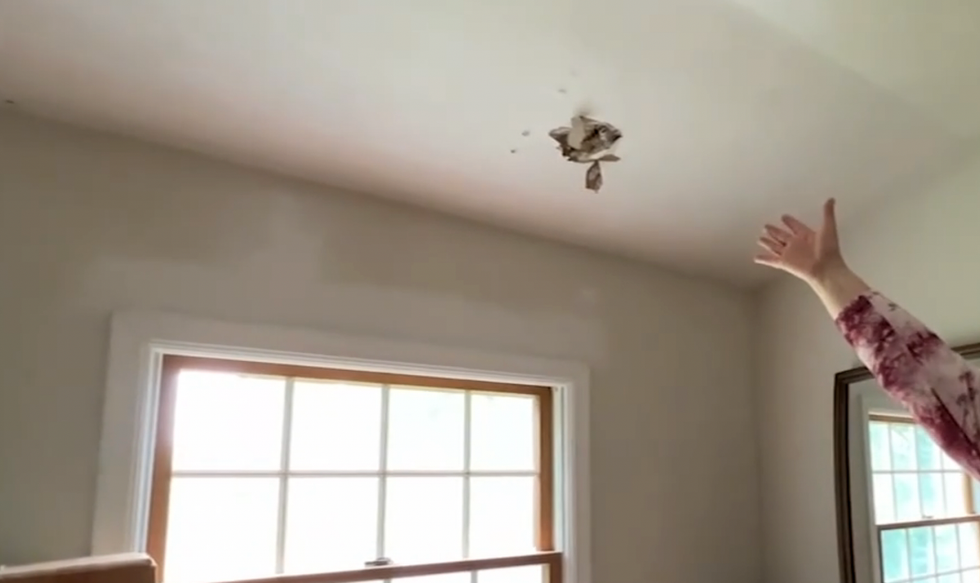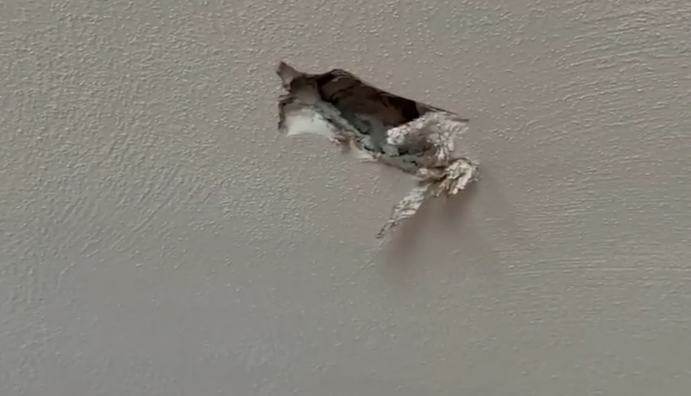 “I’m looking up on the ceiling, and there’s these two holes,” she added to the station. “I’m like, 'What in the world has happened here?’”