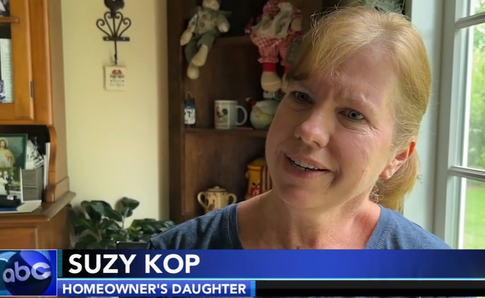 Suzy Kop told WPVI-TV she was left dumbfounded Monday upon finding a sizeable rock on the bedroom floor of her dad's house in Hopewell, N.J. — along with noticeable damage.