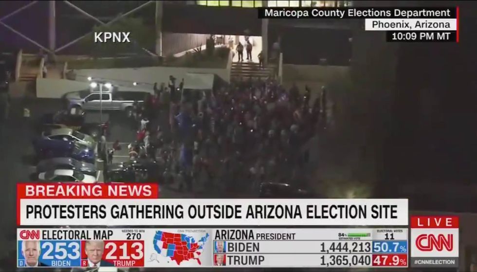 CNN reporter Kyung Lah and host Chris Cuomo were scared about the situation in Maricopa County, Arizona, Wednesday night as the 2020 election vote counting there continued. They were scared because protesters supporting President Donald Trump had gathered outside the building where votes were being tabulated.